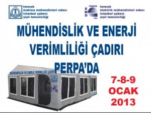 Odamız ve Makina Mühendisleri Odası İstanbul Şubesi Şişli Temsilcilikleri tarafından 7-8-9 Ocak 2013 günlerinde Perpa Ticaret Merkezi önünde `Mühendislik ve Enerji Verimliliği Çadırı` açılacaktır.