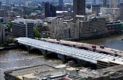Londra’nın merkezindeki Victoria dönemi yolu olan ve yayaların kullandığı Blackfriars köprüsünün çatısı, köprünün kuzey tarafındaki Blackfriars istasyonunda oluşan emisyonları azaltmak için gerçekleştirilen beş yıllık projenin bir parçası olarak 4.400 adet güneş paneli ile kaplandı.