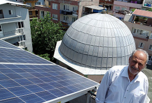 Bursa`da, bin kişi kapasiteli Mevlana Camisi`nin yıllık 12 bin lirayı bulan elektrik giderini azaltmak için güneş panelleriyle enerji üretilmeye başlandı.