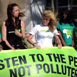 Greenpeace, Durban’daki iklim görüşmelerinin ikinci haftasında, iklim anlaşmalarının önünü tıkayan şirketleri protesto için eylemdeydi. Altı eylemci gözaltına alındı.
