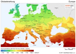 Avrupa çapında güneş enerjisi potansiyeli olarak, İspanya’dan sonra en yüksek değere sahip ülke ise Türkiye. Türkiye’nin yıllık ortalama güneş ışınımı kilometrekarede saat başına 1,311 kW, ortalama yıllık güneşlenme süresi ise 2,640 saat kadar. Bu rakam günlük kilometrekarede saat başına 3.6 kW güce, günde yaklaşık 7.2 saat, toplamda ise 110 günlük bir güneşlenme süresine denk gelmekte.