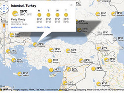 Sayfanın sağ üst köşesinde bulunan uydu sekmesinden hava durumunu seçiyorsunuz. Hava durumunu öğrenmek istediğiniz bölgenin adını arama kutucuğuna yazmanız yeterli. Sayfayı uzaklaştırdığınız zaman (zoom out), bazı bölgelerin weather.com`da yer alan güncel hava durumlarını harita üzerinden görebiliyorsunuz. Havanın güneşli, yağmurlu veya bulutlu olduğunu ülkelerin üzerinde yer alan küçük ikonlar sayesinde öğrenebiliyorsunuz. Hatta Google`ın ABD Deniz Kuvvetleri Araştırma Laboratuvarı ile işbirliği sayesinde bulut yoğunluğunu dahi görebiliyorsunuz. Sayfayı yakınlaştırdığınız zaman (zoom in), ülkelerin üzerinde yer alan ikonlardan gece mi gündüz mü olduğunu görebiliyorsunuz.