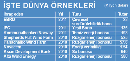 İlk sertifikalı bono Avustralya’da piyasaya çıkacak (300 milyon dolar, AA’, 7 yıllık); ikincisi İngiltere’de (250 milyon pound), üçüncüsü de Amerika Birleşik Devletleri’nde. Bizim iklim bonoları diye değerlendirdiğimiz var olan bonoların bugünkü değeri ise 200 milyar dolar. Bu bonolar Fransa, Amerika, İngiltere ve diğer Avrupa ülkeleri ile birlikte Japonya’da arz edilmiş durumda. Daha net değerlerin gösterildiği İklim Bonoları raporu ise 23 Nisan’da çıkmış olacak. AYFER YILDIZ